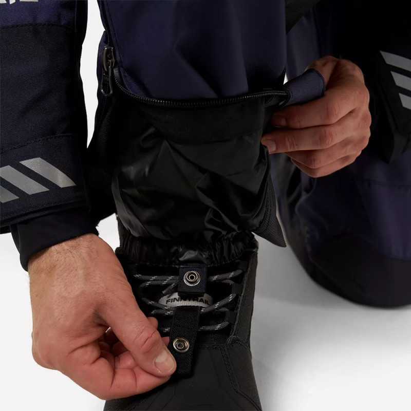 В конструкцию полукомбинезона интегрированы настраиваемые подтяжки, которые позволяют регулировать посадку по росту и создают идеальное прилегание во время активных движений. Благодаря защитным гетрам снег не попадает внутрь ботинок и брюк. Вставка из мягкой пенки в области коленных суставов обеспечивает отличную теплоизоляцию, когда необходимо вставать на колени, и амортизацию, снижая риск повреждений. Центральная двухзамковая тракторная молния YKK с дополнительной подпланкой обеспечивает прочное соединение и защиту от ветра. Боковые швы на штанинах оснащены влагозащитными молниями. Длину штанин также можно отрегулировать. Полукомбинезон имеет три внешних кармана на застёжках-молниях: два набедренных с защитными клапанами и тёплой подкладкой, а также один объёмный нагрудный. Модель оснащена светоотражающими элементами, которые обеспечивают безопасность при нахождении в темноте или при плохой видимости.