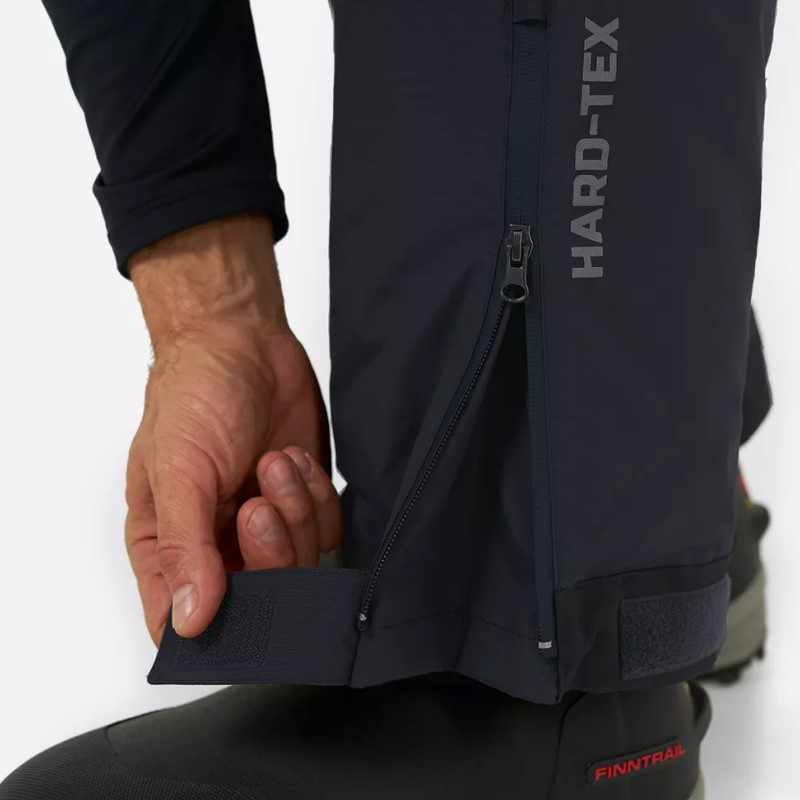 - Боковые влагозащитные молнии в нижней части штанин для комфортного надевания поверх высокой обуви.