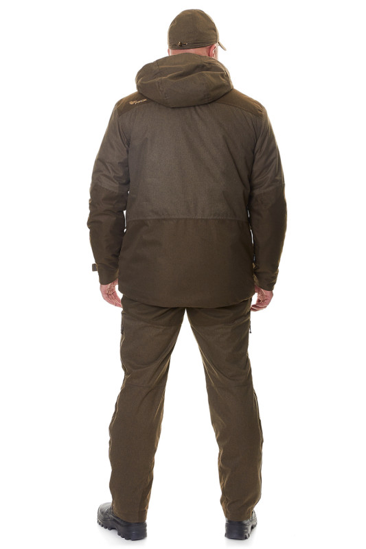 Костюм Винчестер -15 разработан для ходовой охоты в зимний период при умеренных морозах, поздней осенью или ранней весной. Костюм анатомического кроя, выполнен из бесшумной мембранной ткани "Бавария". Швы проклеены для защиты от влаги. В качестве подклада применяется ткань вельбоа, обеспечивающая теплоизоляцию, влагоотведение, а также комфортное применение любого термобелья и утепляющих слоев за счет своей гладкости (утепляющие слои не цепляются за подклад). Применение современных материалов позволило снизить вес костюма, что позволит охотнику меньше уставать при длительных переходах. На куртке предусмотрены карманы под рацию (для левшей и правшей). На куртке присутствует вентиляция в боковом шве. На брюках используется высокая молния с двумя бегунками, которая также выполняет роль вентиляции.