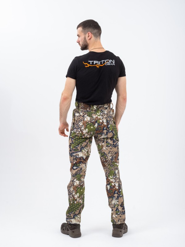 Между ними – мембранная прослойка. Слои надёжно соединены PU (полиуритановой) пропиткой. Внешняя поверхность защищает от ветра и осадков, а внутренний слой ткани отводит избыточную влагу, позволяя телу дышать. Показатели мембраны 10000/10000.