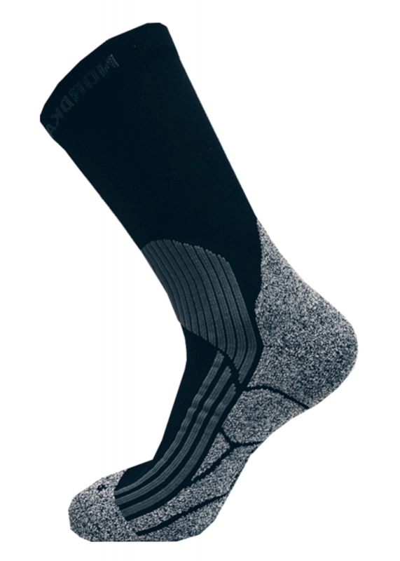 Носки NordKapp из профессиональной линейки с волокнами Coolmax подходят для высокой и средней активности летом и в демисезон. Великолепно отводят влагу, очень быстро высыхают, препятствуют появлению неприятных запахов, гипоаллергенны. Улучшают вывод влаги при использовании в обуви с применением мембранных материалов. Специальное уплотнение по подошве распределяет нагрузку, специальное плетение и структурные "каналы" дают циркуляцию воздуха и влагоотвод. Плотная посадка и поддержка голеностопа. Ткань Coolmax значительно мягче хлопка, в 2 раза быстрее сохнет и лучше «дышит». В сочетании с лайкрой достигается наилучшее прилегание материала к телу, улучшаются влагоотводящие свойства изделия, поэтому изделия Сoolmax + лайкра подойдут для больших физических нагрузок. Cвойства ткани Coolmax сохраняются даже после длительного использования. Носки Coolmax — это комфорт даже в жару. Носки из ткани coolmax следует носить с хорошо «дышащей» обувью с сетчатыми вставками, для того чтобы влага имела возможность испаряться.