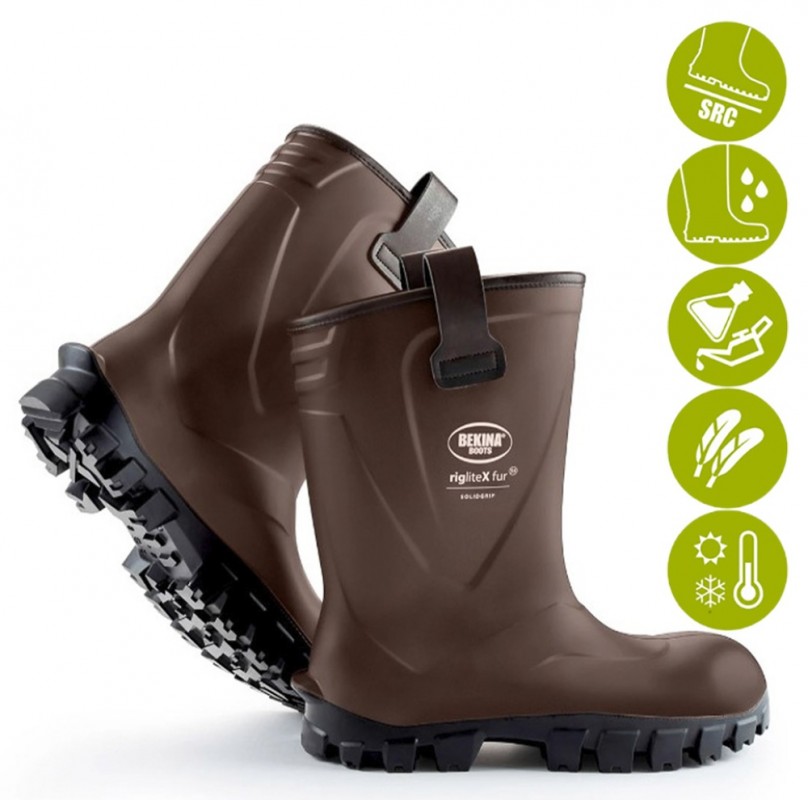 Сапоги BEKINA RIGLITE X Fur 04 brown - это укороченная модель сапог, которая подходит для людей с разной полнотой голени.Инновационный материал Neotane. Это вспененный полиуретан, который обладает высокой прочностью, износостойкостью, эластичностью и легкостью. Сапоги из Neotane весят на 40% меньше, чем сапоги из резины или ПВХ, что снижает усталость ног при длительной ходьбе. Кроме того, Neotane имеет отличные термоизолирующие свойства, которые позволяют сапогам сохранять комфортную температуру внутри при любой погоде. Сапоги из Neotane не трескаются и не деформируются при морозе, не выгорают и не теряют цвет при солнце. Сапоги из Neotane легко чистятся и не впитывают запахи.Подкладка из искусственного меха. Это мягкая и приятная на ощупь ткань, которая создает дополнительный слой тепла и уюта внутри сапог. Подкладка из искусственного меха не вызывает аллергии, не линяет и не сбивается в комки. Она также обладает хорошей воздухопроницаемостью, которая предотвращает потоотделение и натирание ног. Надежная подметка. Это важная часть сапог, которая обеспечивает устойчивость и безопасность на любой поверхности.