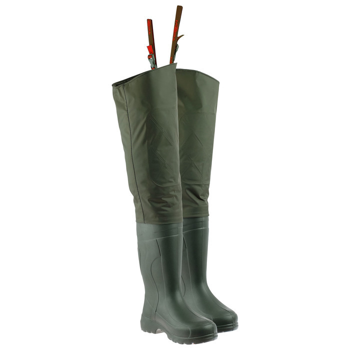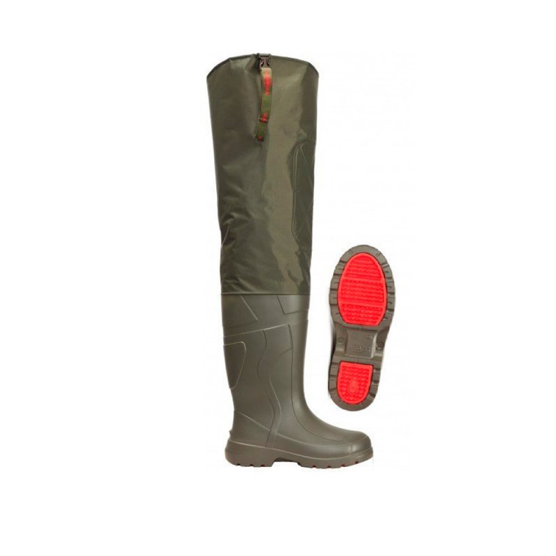 Забродники Торви бродни из материала ЭВА модель Лиман, без вкладыша, легкие, водонепроницаемые, теплые и эластичные. Они выполнены на базе модели Универсал, т.е. к сапогу герметично прикреплен верх из нейлона с ПВХ покрытием. Болотники имеют комфортную колодку для широкой отечественной стопы с высоким подъемом. Просторное голенище сапога и специальная засечка на пятке позволяют легко снимать сапоги. Специальные наплывы защищают нос и пятку от случайных ударов. ТЭП подошва защищает сапоги из материала ЭВА от проколов и, благодаря специальному рисунку протектора, позволяет уверенно держаться на любых поверхностях. У рыбацких сапог Лиман, предусмотрена ячеистая структура дна сапога для сбора влаги.