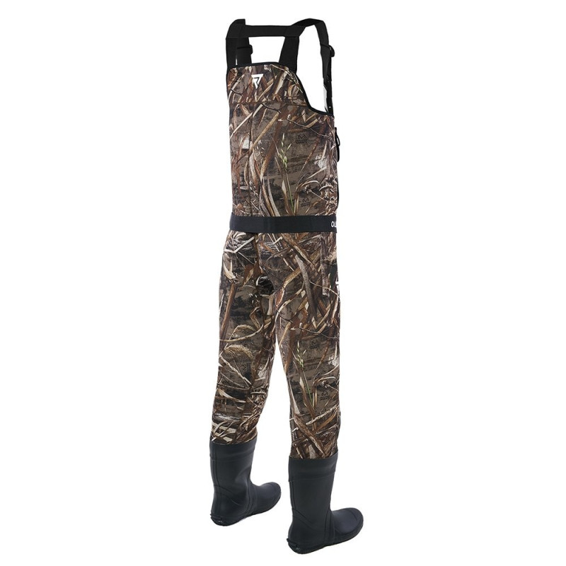 Для любителей офф-роуд и рыбалки в холодное время года. Эластичность неопрена дает дополнительный комфорт, а нагрудная муфта позволяет согревать руки. Камуфляж Realtree Max-5 .