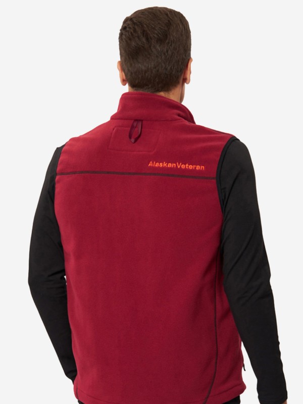 Жилет имеет воротник-стойку, центральную застежку-молнию, 1 нагрудный и 2 боковых кармана. На груди круглый шеврон с лого. На спине около шва кокетки есть вышивка названия модели. Флисовые материалы известны своей хорошей гигроскопичностью и, за счет своей структуры, способностью удерживать тепло тела. Жилет Alaskan Veteran рекомендован для использования на рыбалке, охоте и для занятий активным отдыхом в любое время года.