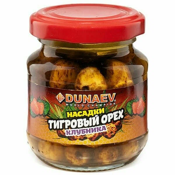 Натуральные насадки очень популярны и на протяжении многих десятилетий пользуются спросом у рыболовов во многих странах мира. Тигровый орех – одна из самых известных насадок для ловли карпа, характеризующаяся повышенной питательной ценностью, богатая витаминами и минералами, обладающая высоким содержанием сахара, различных масел, клетчатки и крахмала. Натуральный вкус цельного тигрового ореха с ароматом тутти-фрутти надолго удерживает рыбу в точке лова, не насыщая ее, а также отсеивает мелочь. Эти орешки без особых усилий насаживаются на волос и прекрасно на нем держатся. На тигровый орех рекомендуется ловить весной, летом, осенью, так как эта насадка наиболее результативна в теплой воде. Дополнительным преимуществом является проверенная рецептура, прошедшая тестирование в конкурентных условиях. Уловистые качества этих насадок высоко ценятся. Выпускаются насадки в стеклянных банках, имеющих удобную крышку. Объем каждой баночки 100 мл.