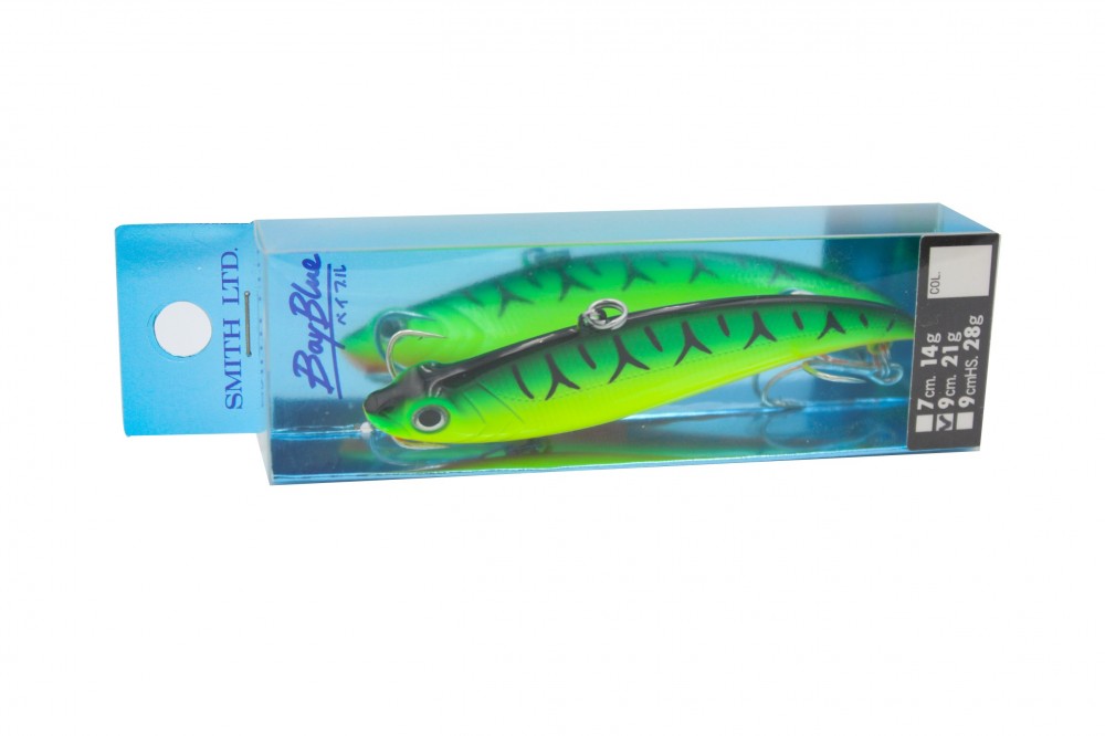 Если виб Bay Blue 90 имеет вес 21 гр, то представленная модель при такой же длине в 9 см - 28 гр. Соответственно, это позволяет данному воблеру погружаться глубже, способствует стабильности на течении. А в совокупности с прогонистой формой улучшает кастинговые показатели. Воблеры категории vibration от бренда Smith серии Bay Blue 90HS являются всесезонными и одинаково хорошо работают на вертикальных и горизонтальных проводках. Игра виба низкоамплитудная и высокочастотная, вызывает интенсивные возмущения среды. Они выманят потенциально возможную добычу (судака или зубастую щуку) из укрытия при условии слабой видимости. Отсутствие посторонних звуков на руку, так как не вспугнет излишне осторожных особей.